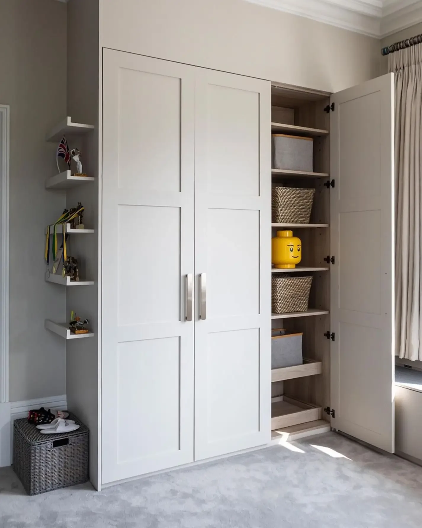 Choose muted painted tones, natural wood interiors, or subtle glass accents. Add internal lighting, sensor-operated drawers, and adjustable rails to ensure flexibility. Coordinated colour palettes maintain the clean, structured look that defines shaker design.
